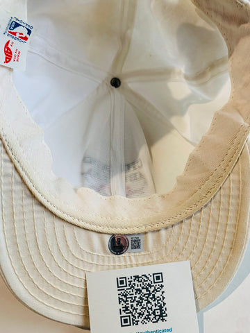 Vintage snapback style Chicago Bull shat signed on the brim in ballpoint ink by Michael Jordan. Overall in fine condition with minor discoloration & handling wear